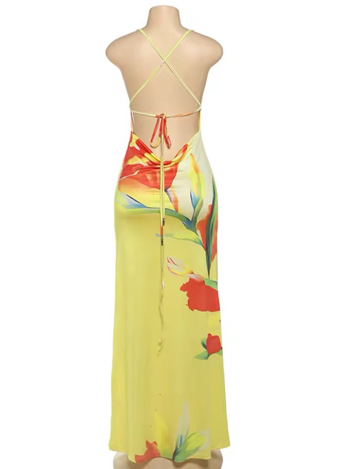 Lemon yellow maxi dress great material ready for the summer has stretch fit true to size model wearing size medium